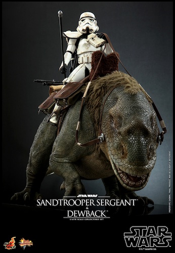 - A new first-look unboxing video (viewable below) for the Hot Toys Sandtrooper Sergeant & Dewback 1/6th-scale collectible figure set has been released by Sideshow Collectibles.